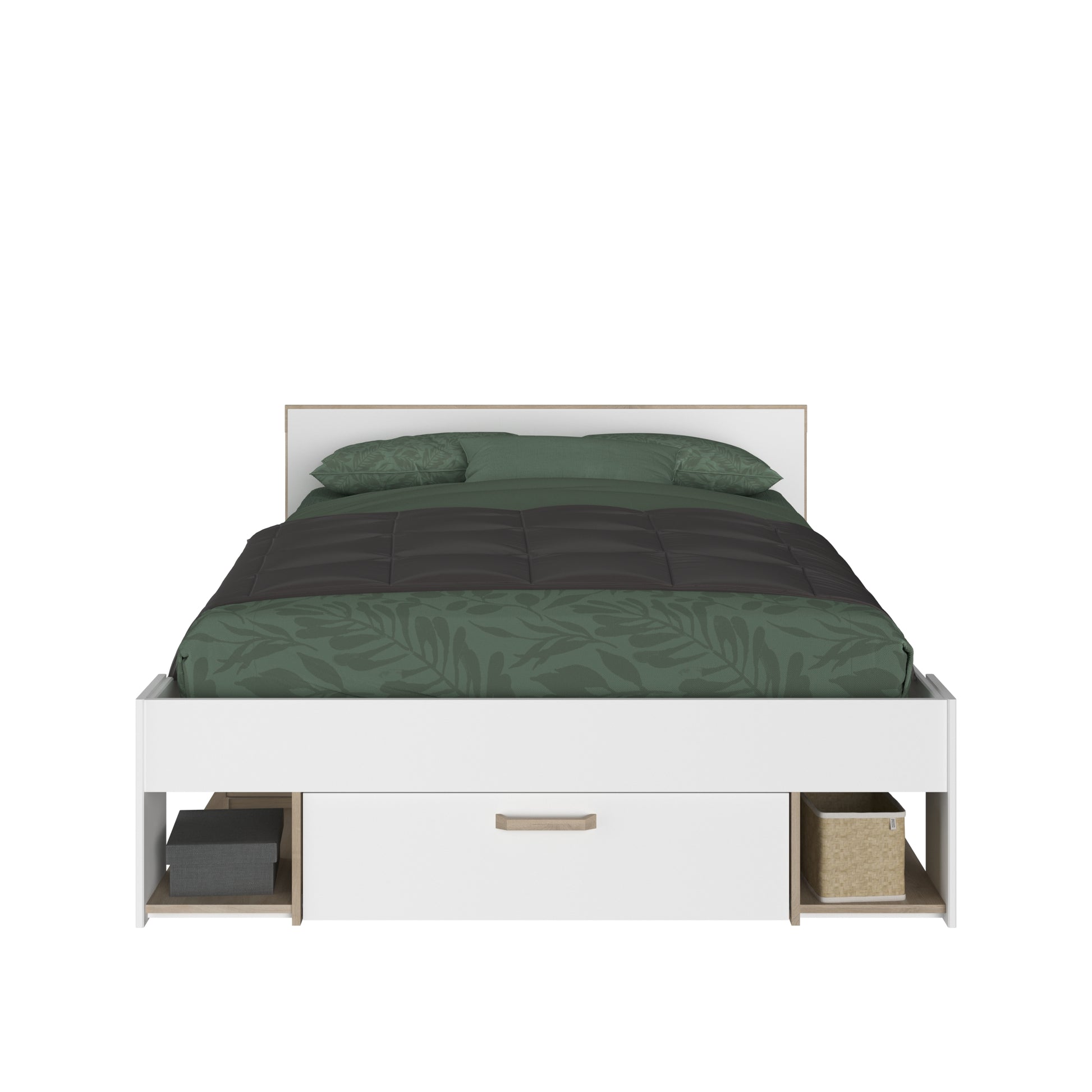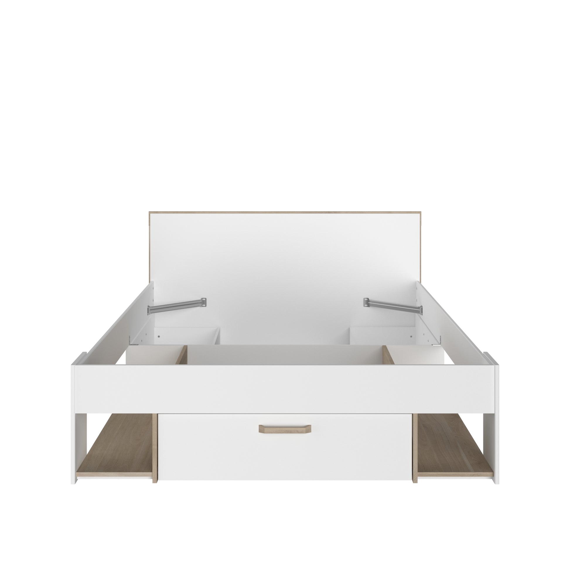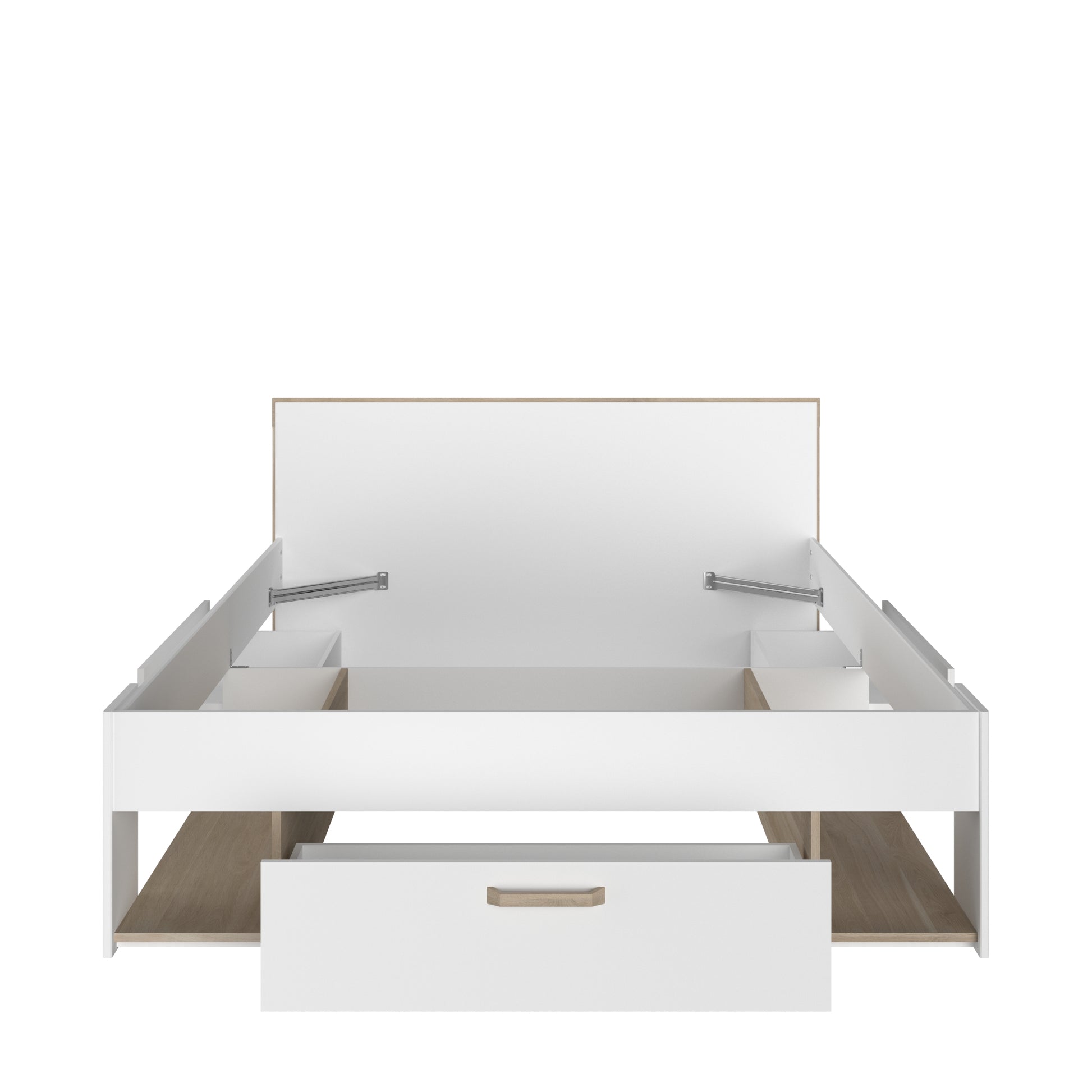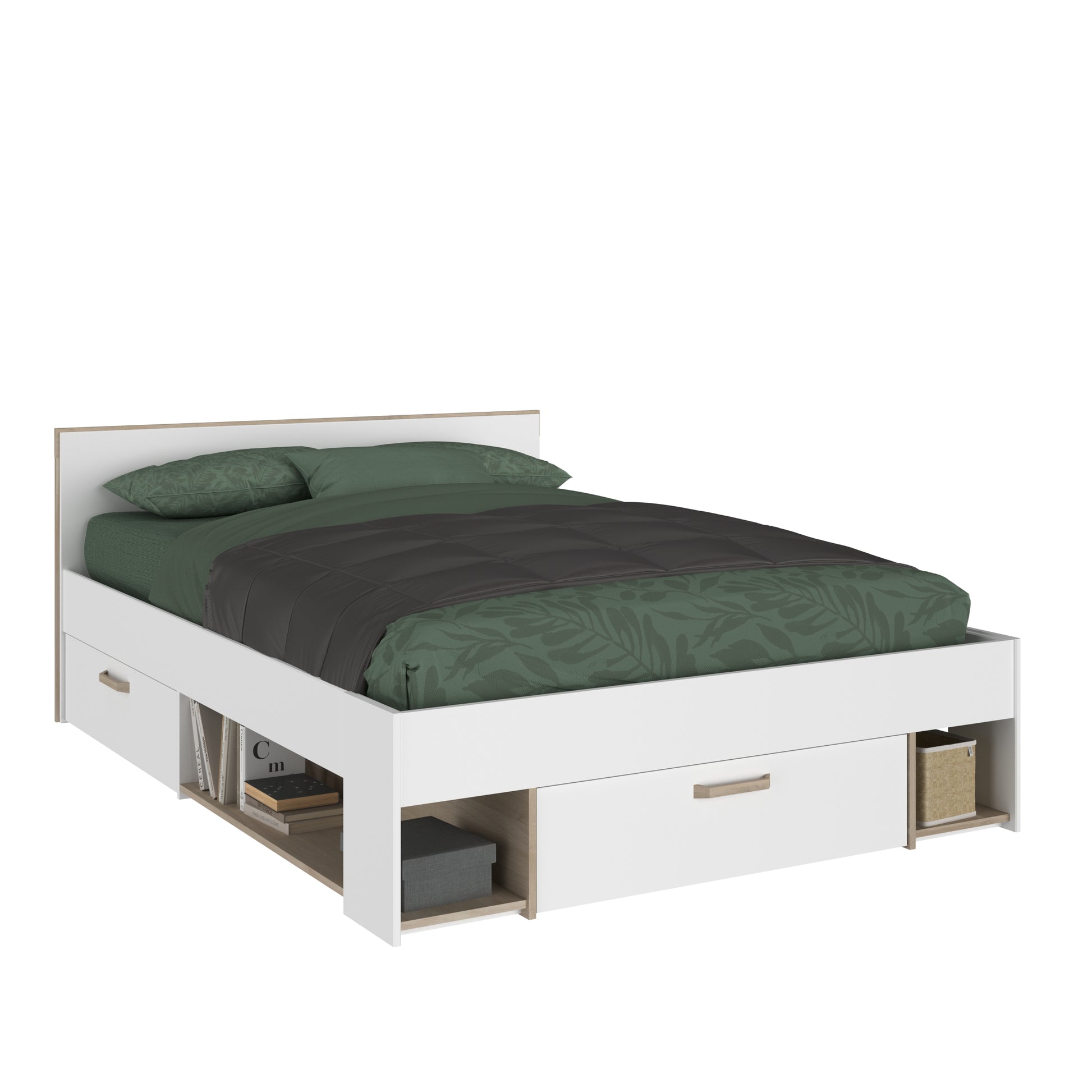 Double bed 140cmx190cm white and oak affect compact design with drawers