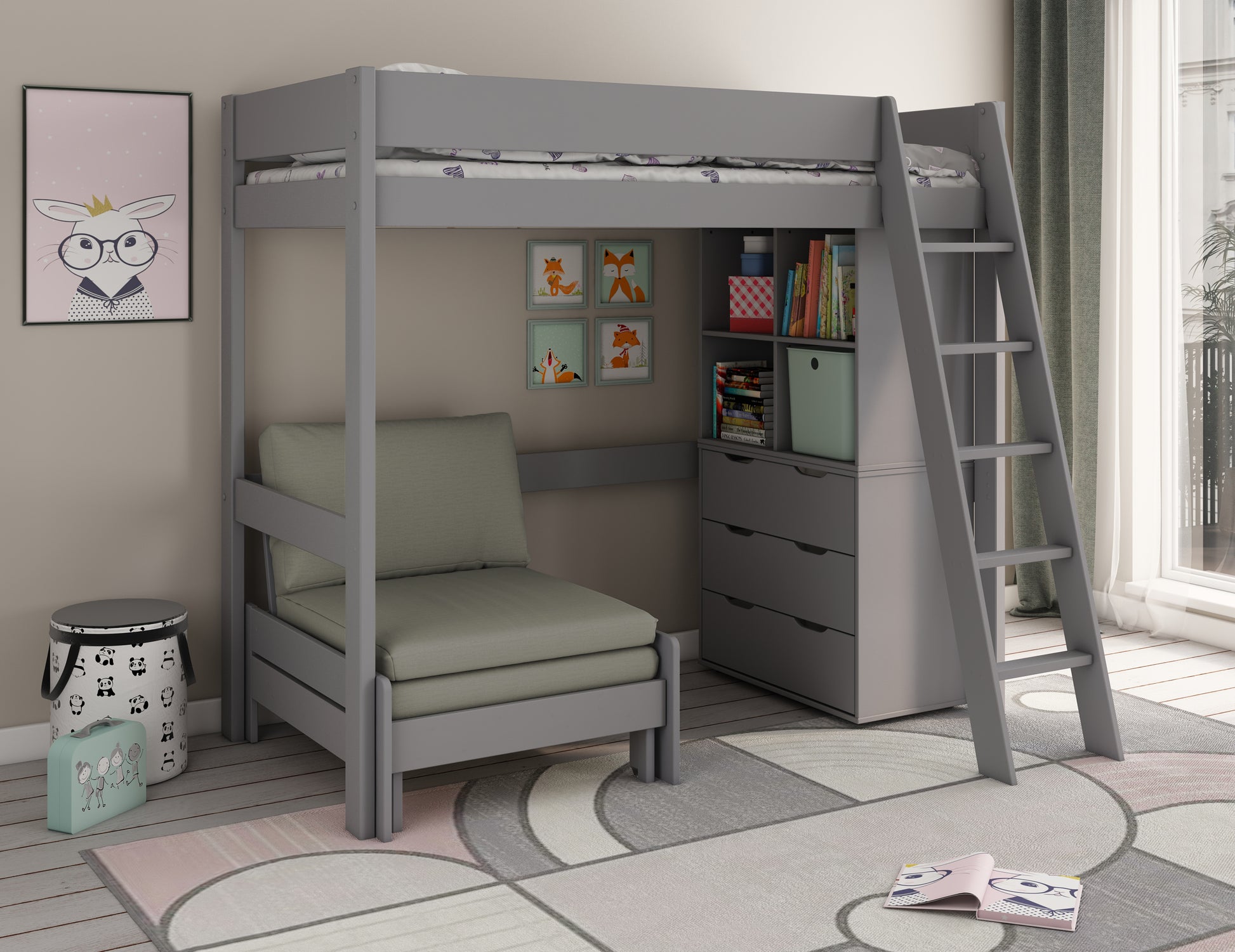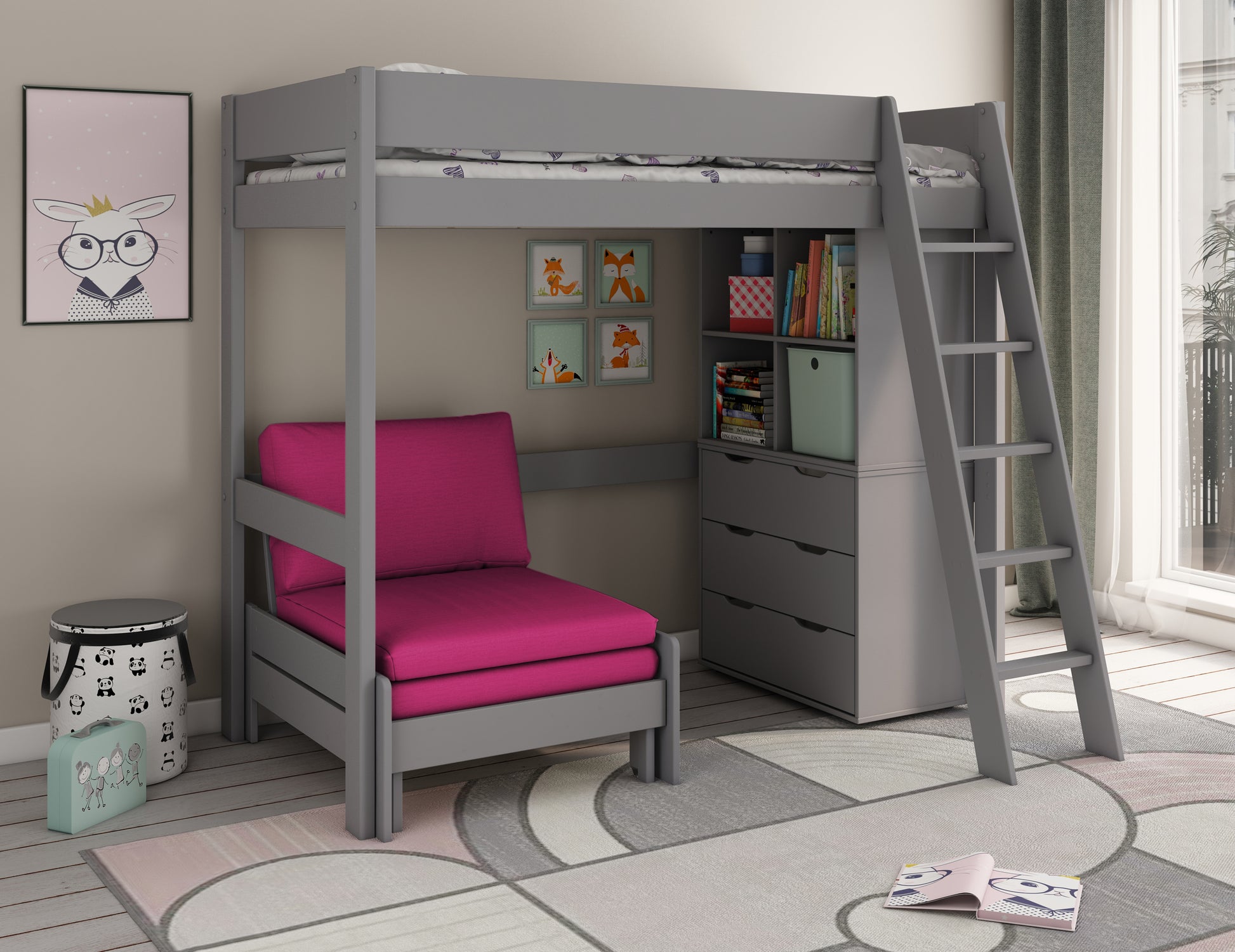 The Estrella Highsleeper is a comfy and modern bed above a roomy desk which is the perfect match for study or Gaming. The cool chair is a wonderful place to kick back and relax and conveniently expands into a bed so perfect for a sleep over.