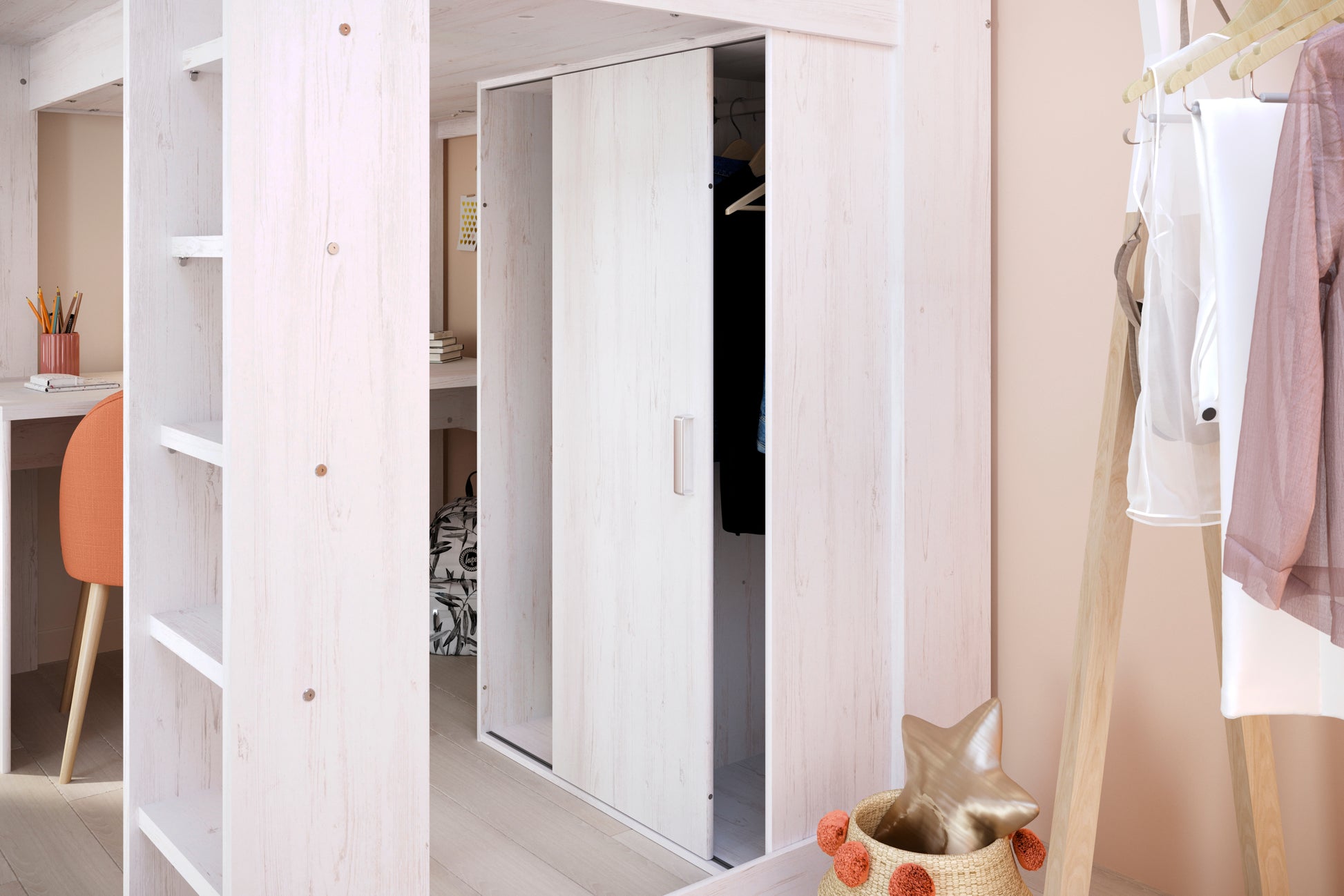 The Parisot Higher High Sleeper—a modern marvel designed with the needs of teenagers in mind. This High Sleeper with desk and wardrobe combines intelligent features and a contemporary colour palette, making it the perfect addition to any teenager's bedroom.