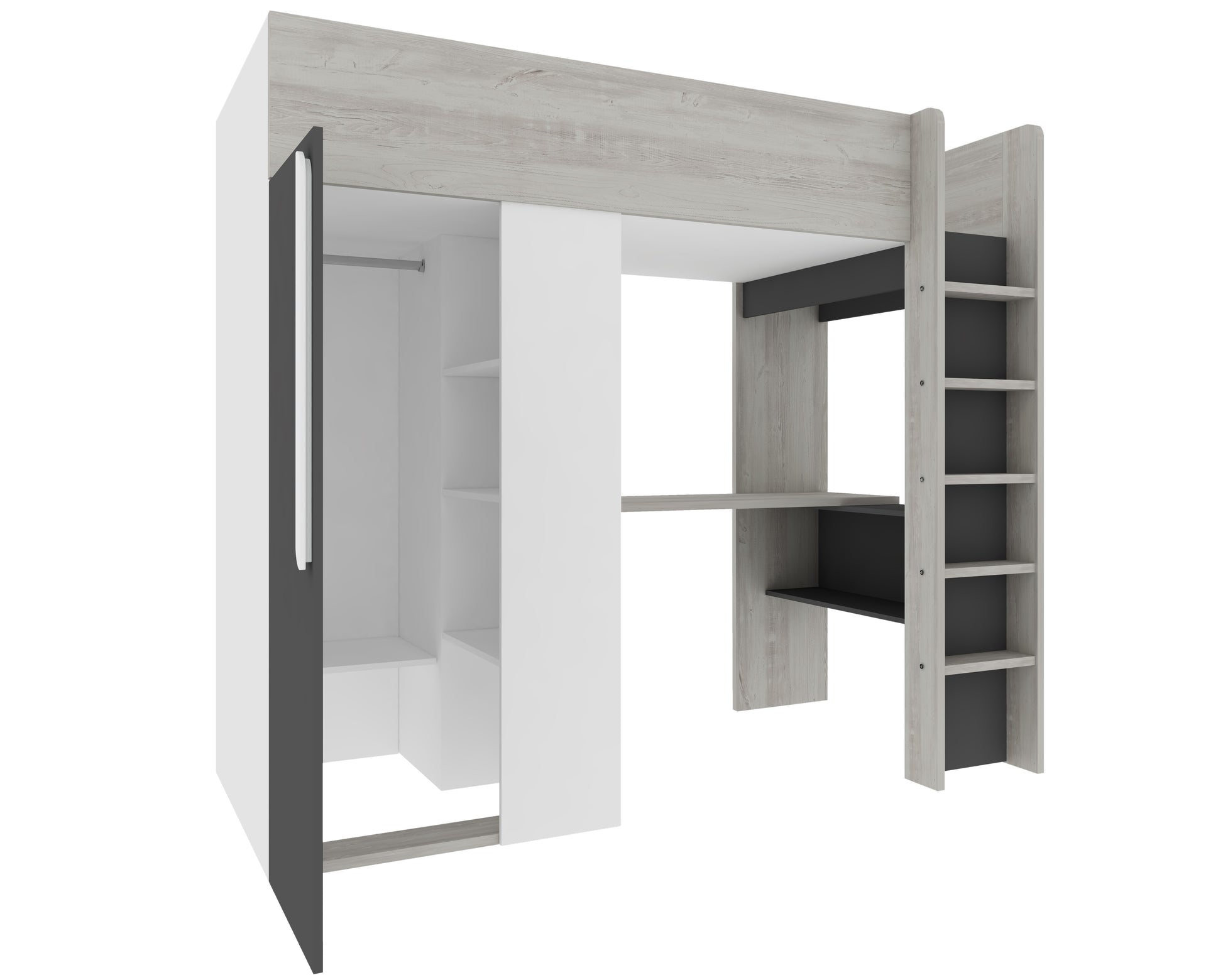 This high sleeper is a must-have for any teenager. It's sleek and stylish, and it comes in three modern colors: white, grey, and coal. The high sleeper is made from high-quality particle board that's been heat-treated and foil-wrapped, so it's durable and sturdy.
