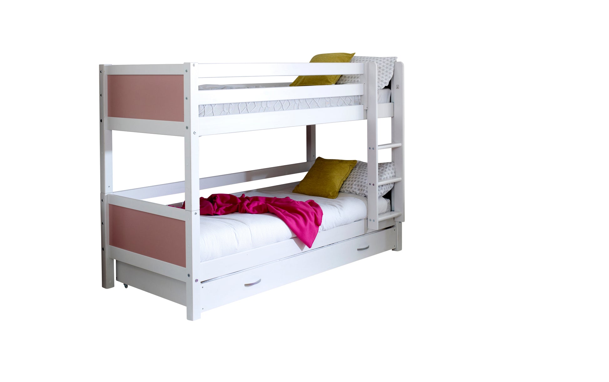 Like most bed frames in the Thuka Nordic range, the Nordic Bunk Bed has five different end panel colours/designs to choose from. Flat White, Grey, Grooved White, Rose or Slatted White.