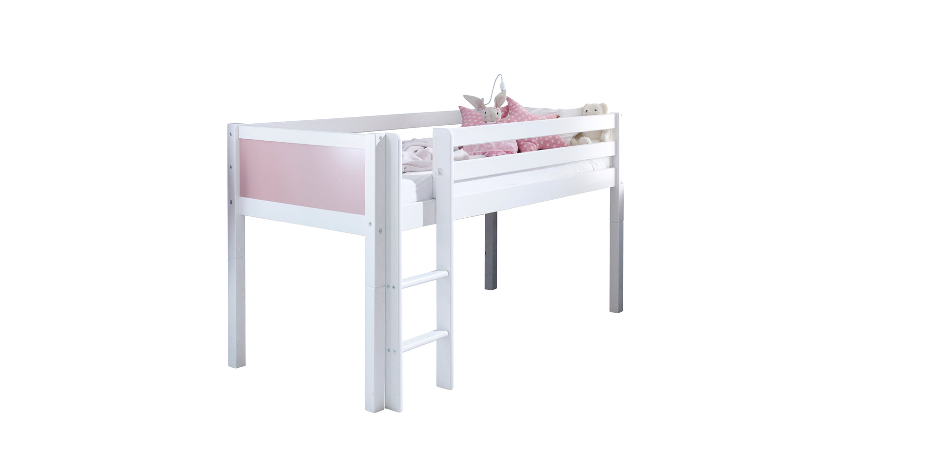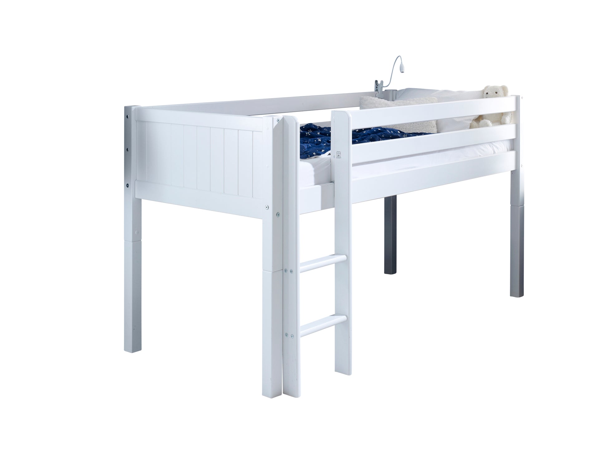 The Thuka Nordic mid sleeper bed 1 in a white finish with flat panelled gable ends features a reversible position 3 step ladder. The Nordic bed can be separated from the mid sleeper frame to be used as a single bed.