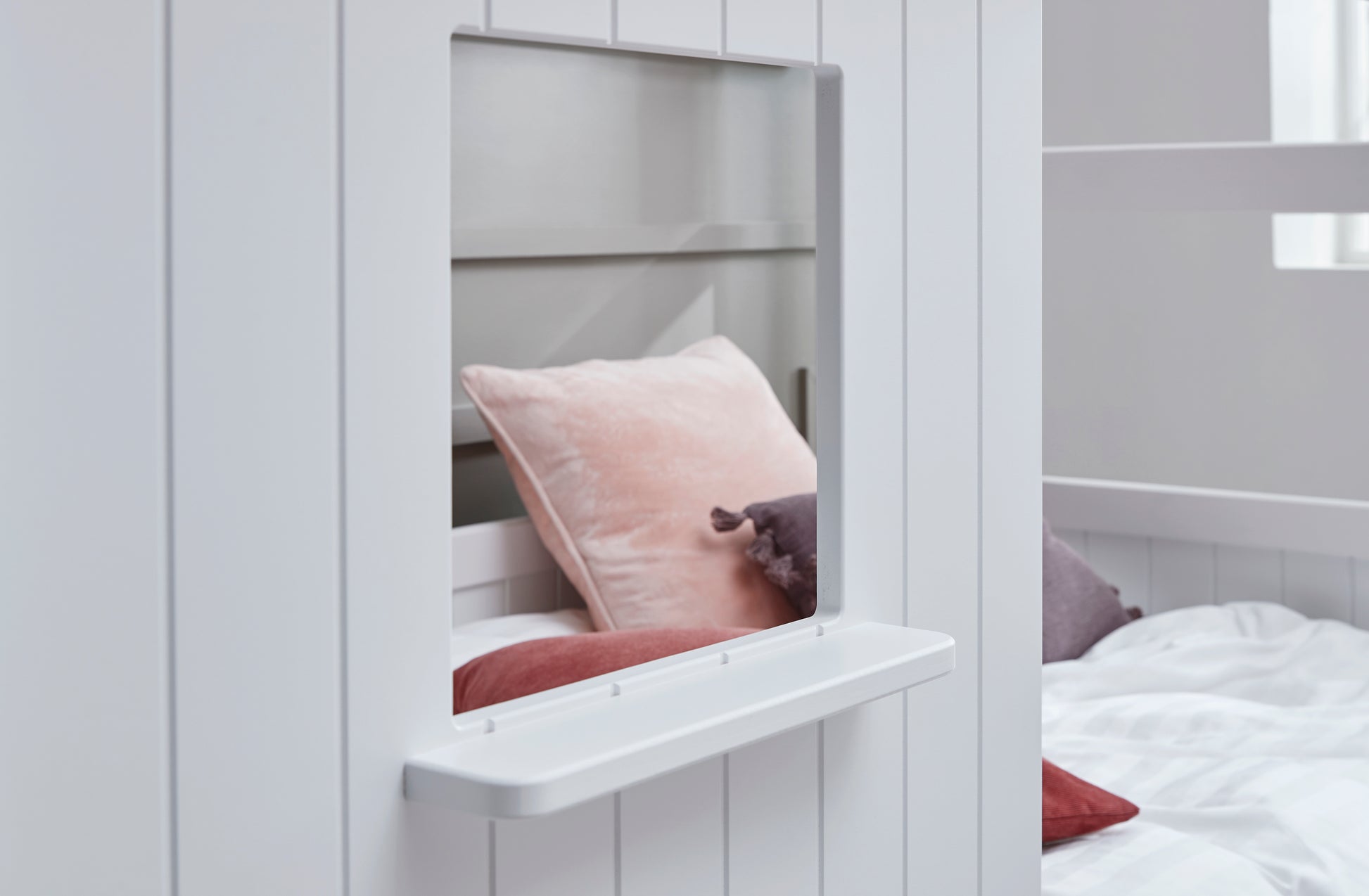The Thuka Nordic Playhouse Bed 3 is a novel single bed and is suitable for children of all ages. This fun single bed will transform any room with its half roof and side. The Thuka Nordic Playhouse Bed 3 provides a fun and comfy area for sleeping. It comes in plain white and has a tongue grooved half roof. The Thuka Nordic Playhouse Bed 3 has a useful window ledge perfect for a little shelf. This sturdy construction can easily convert in to a single bed and has a slatted base for extra comfort. The Thuka Nordic Playhouse Bed comes flat packed with easy to follow instructions.