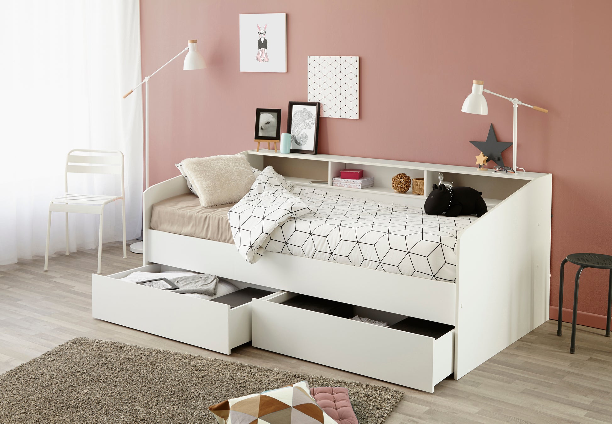 The sleep storage bed is robust and chunky and finished in a clean white although the back boards for the shelving are reversible and you have an option of which colour you want to show, pink, cappuccino, white or black, all colours come with the package so you don't have to pre-select.