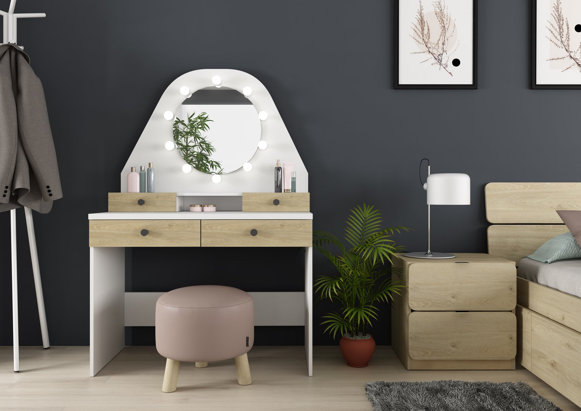 Star Vanity Table Oak/White