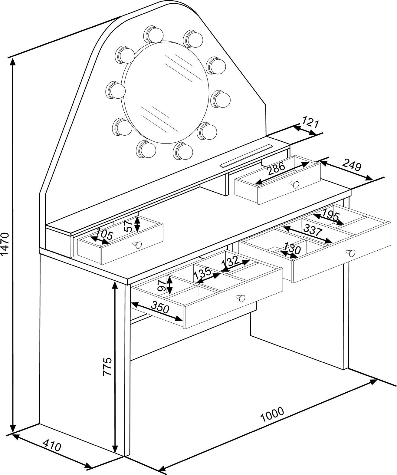 The lights around the circular mirror give the perfect illumination and there is plenty of storage space in the 4 drawers, 2 of which come complete with useful dividers.