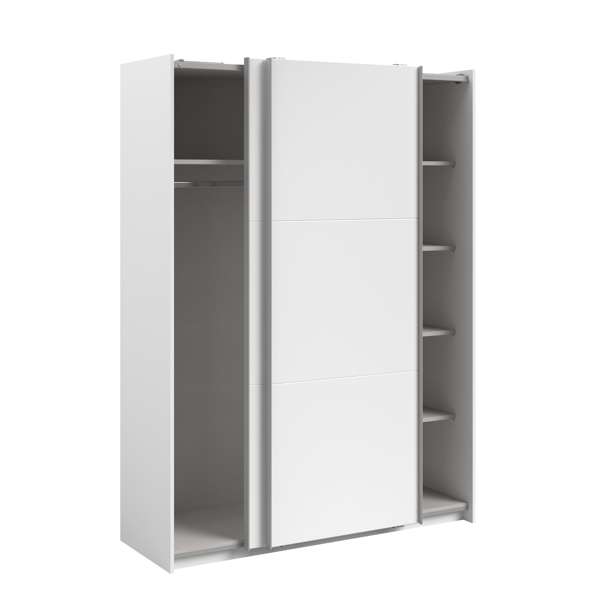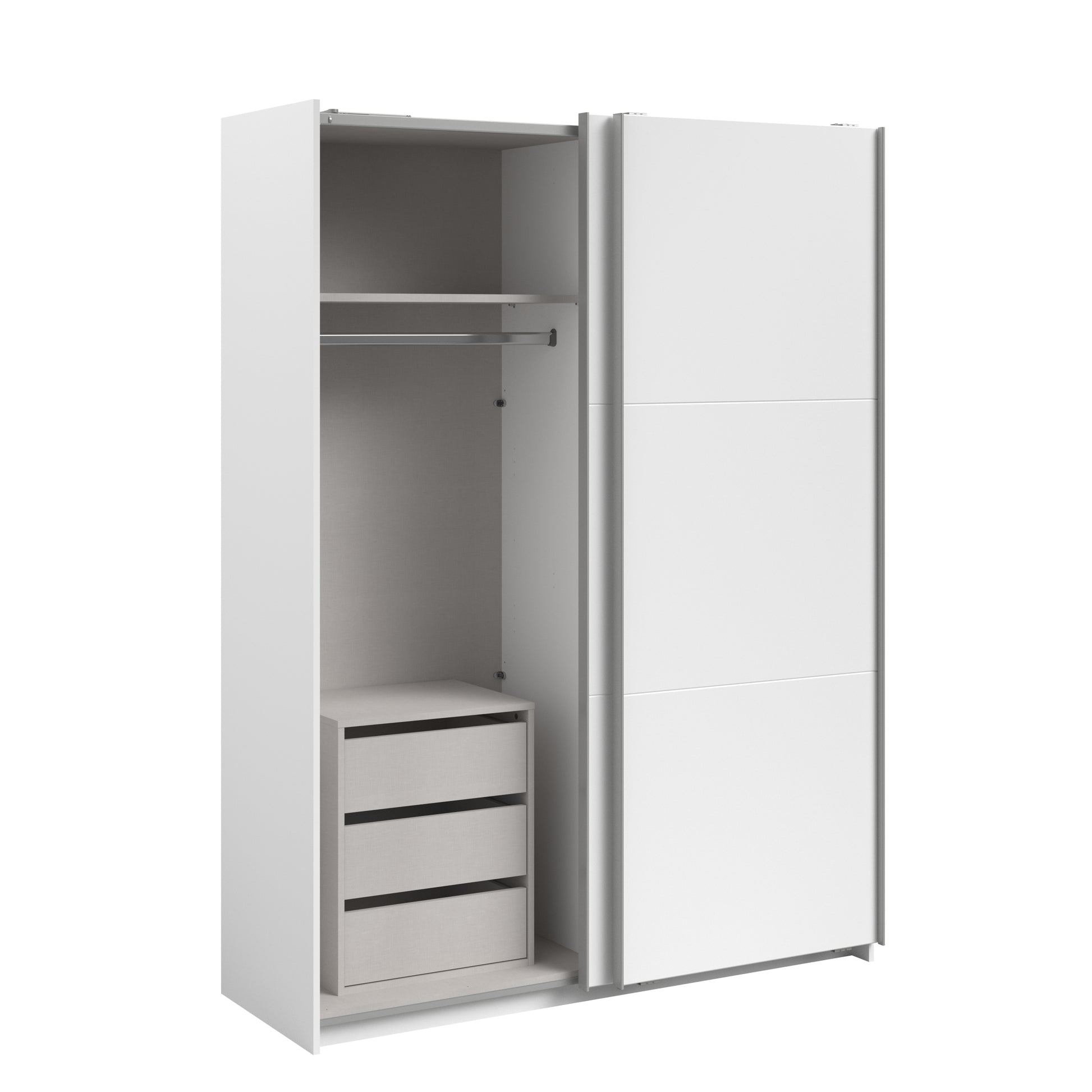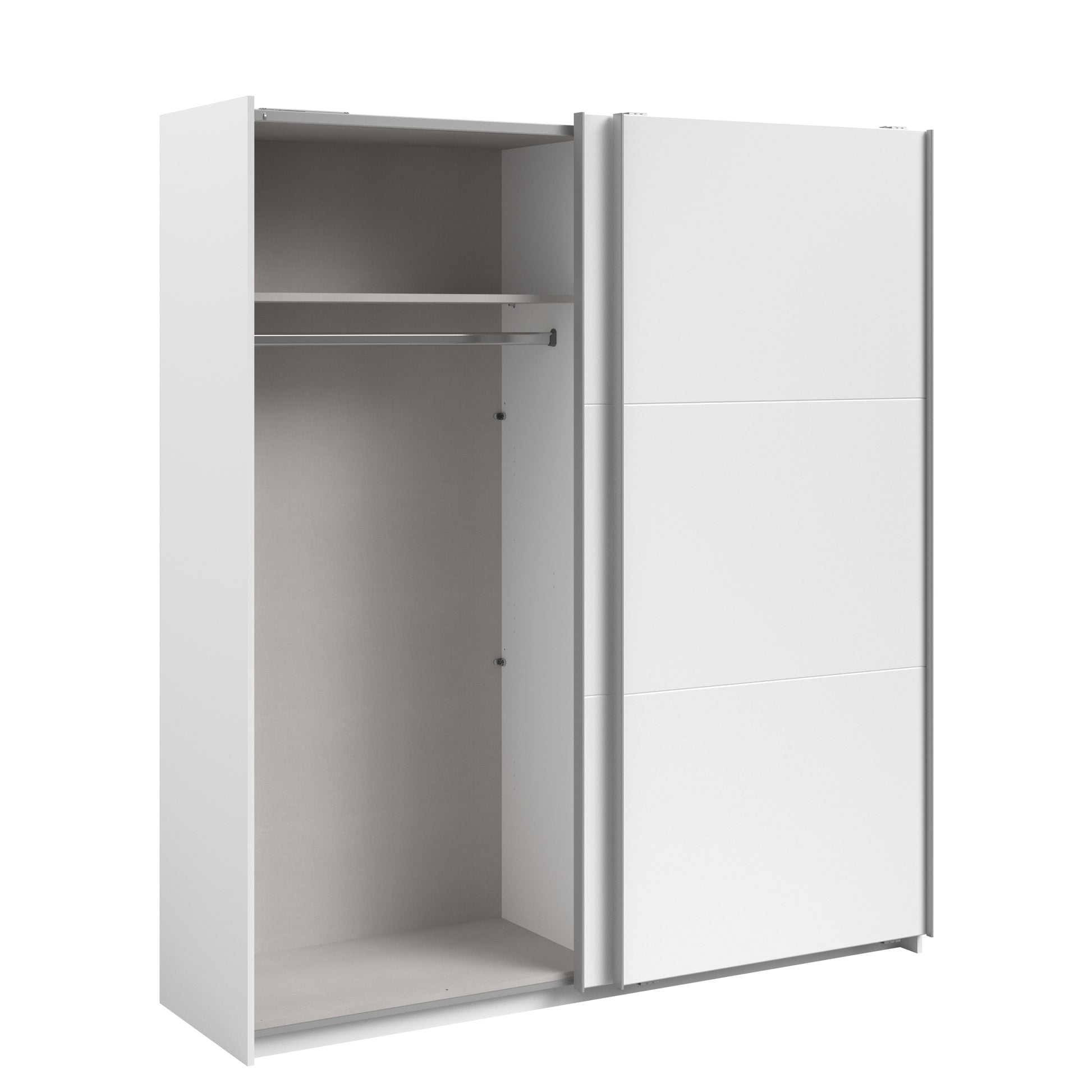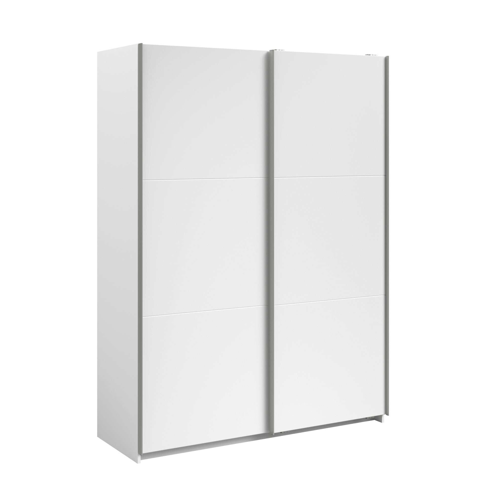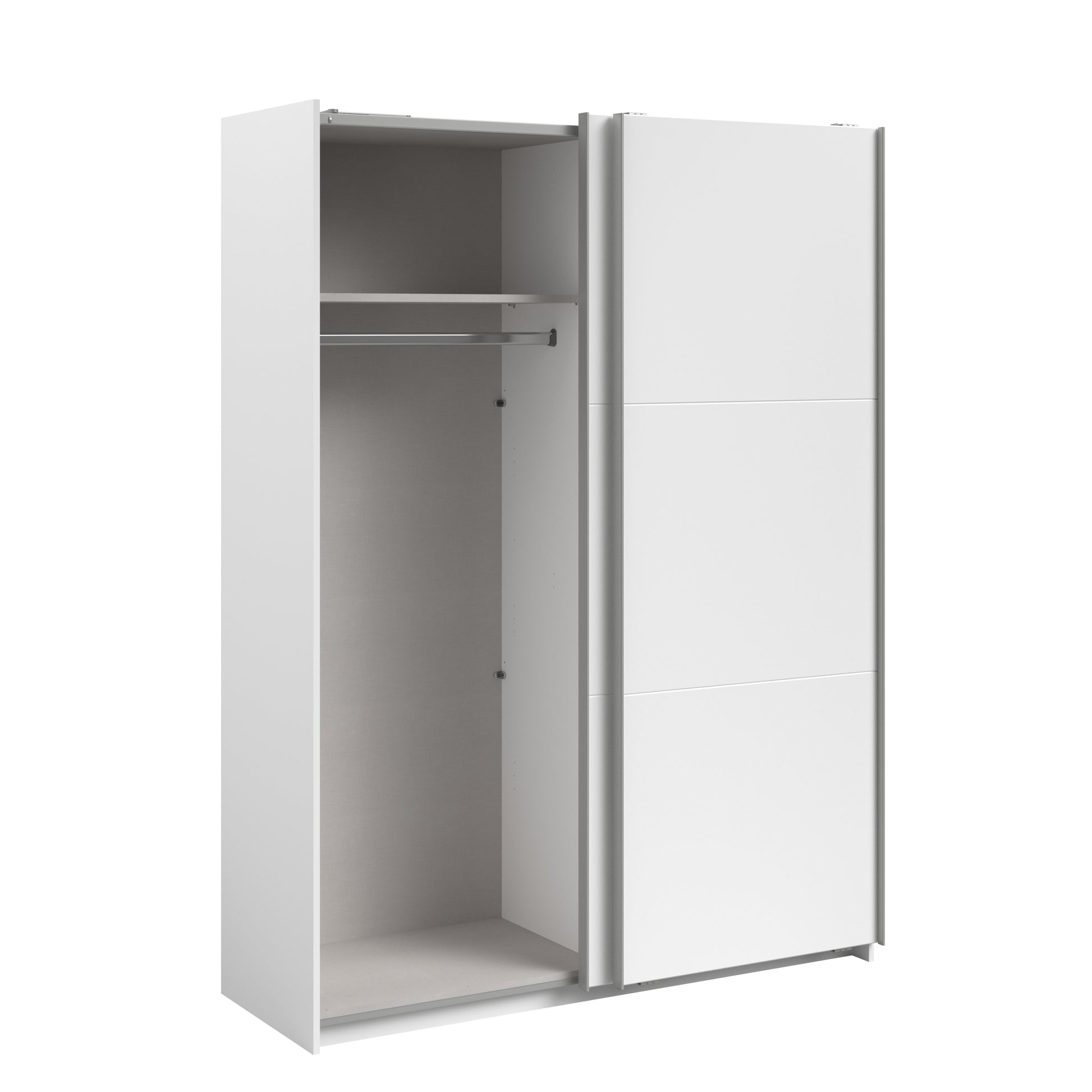 Parisot White finish wardrobe with sliding doors. A unique product small sliding wardrobe. No mirror just plain white. Easy roll soft close mechanism. Smooth action sliding doors. Can be assembled on delivery if required. IN STOCK FOR FAST FREE DELIVERY!