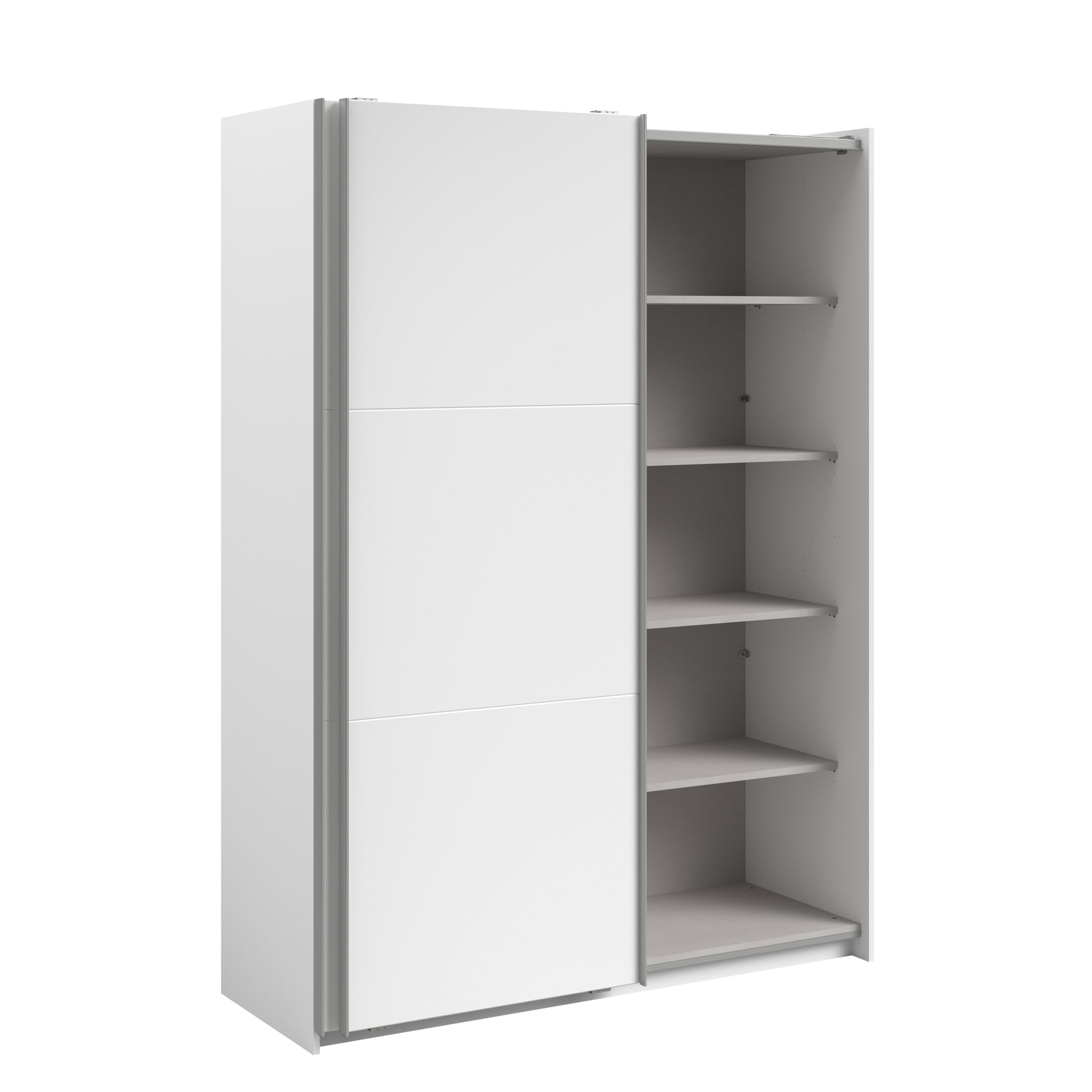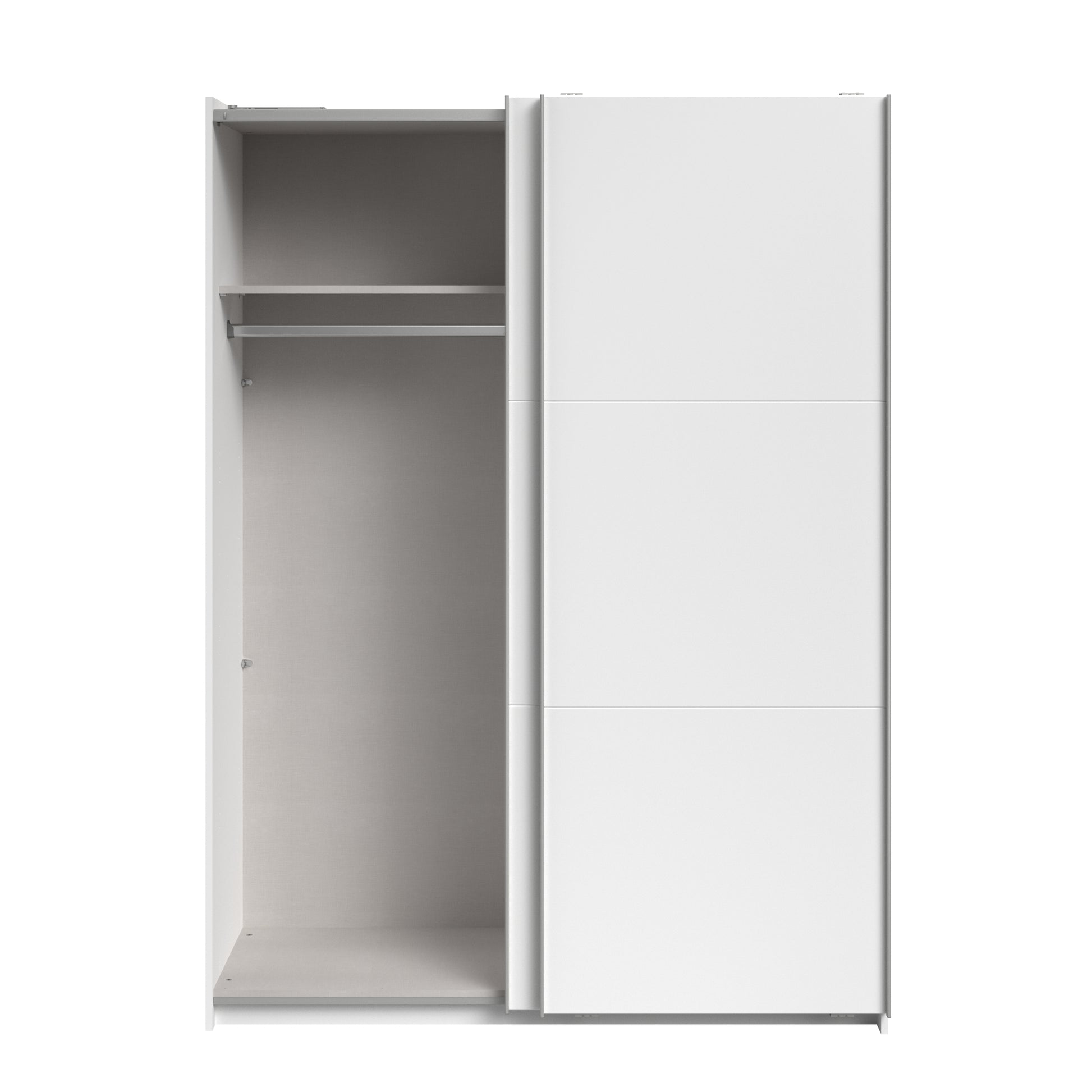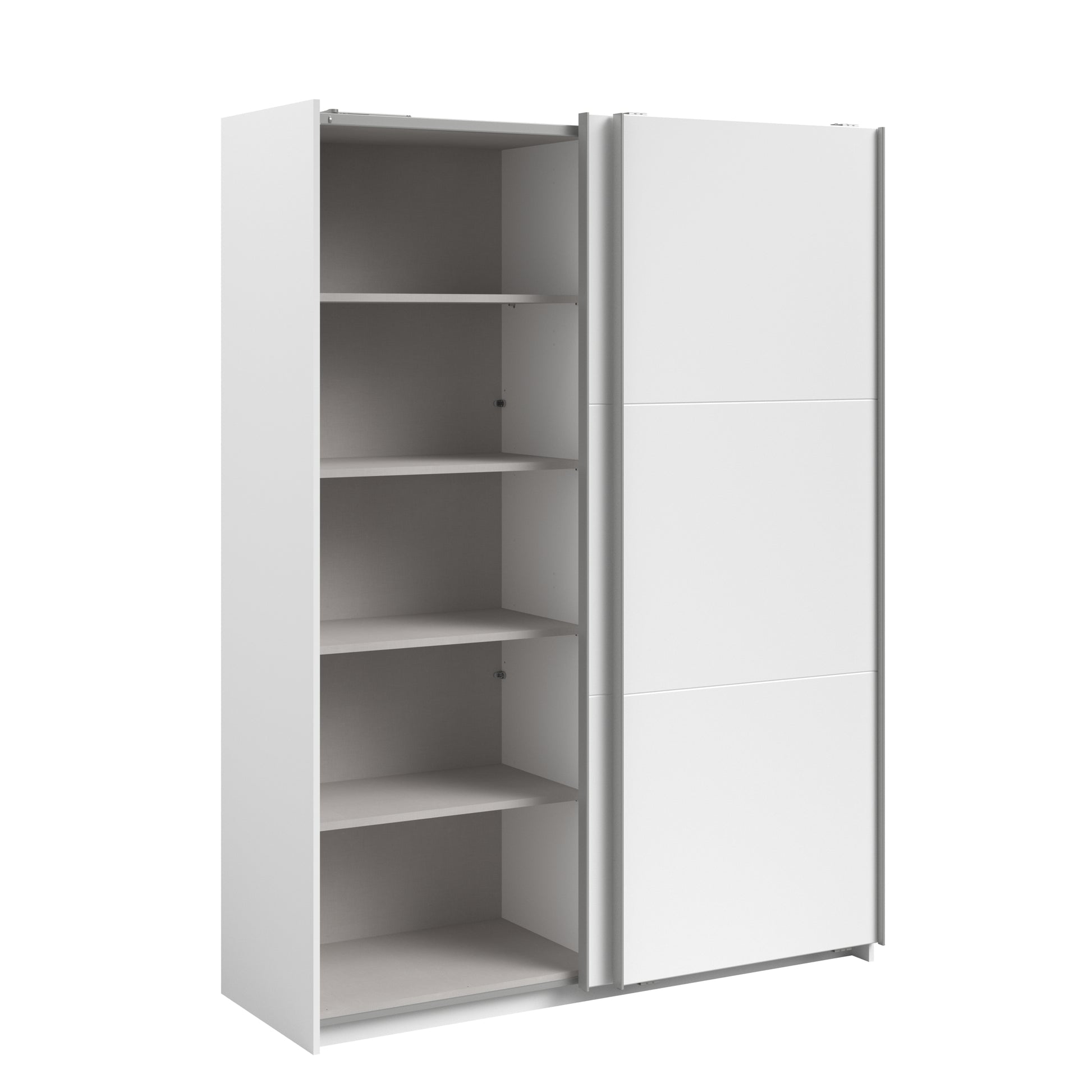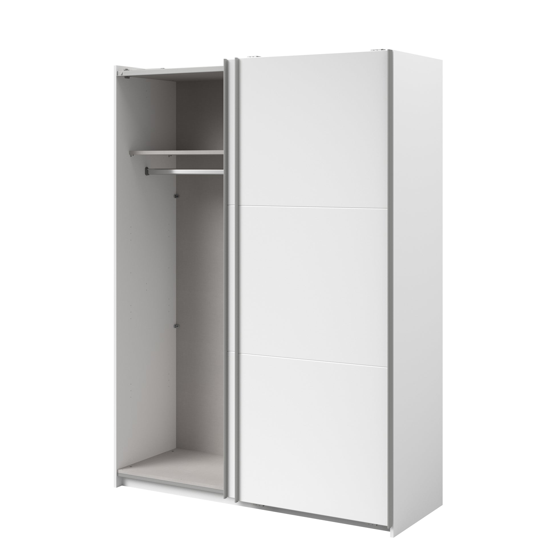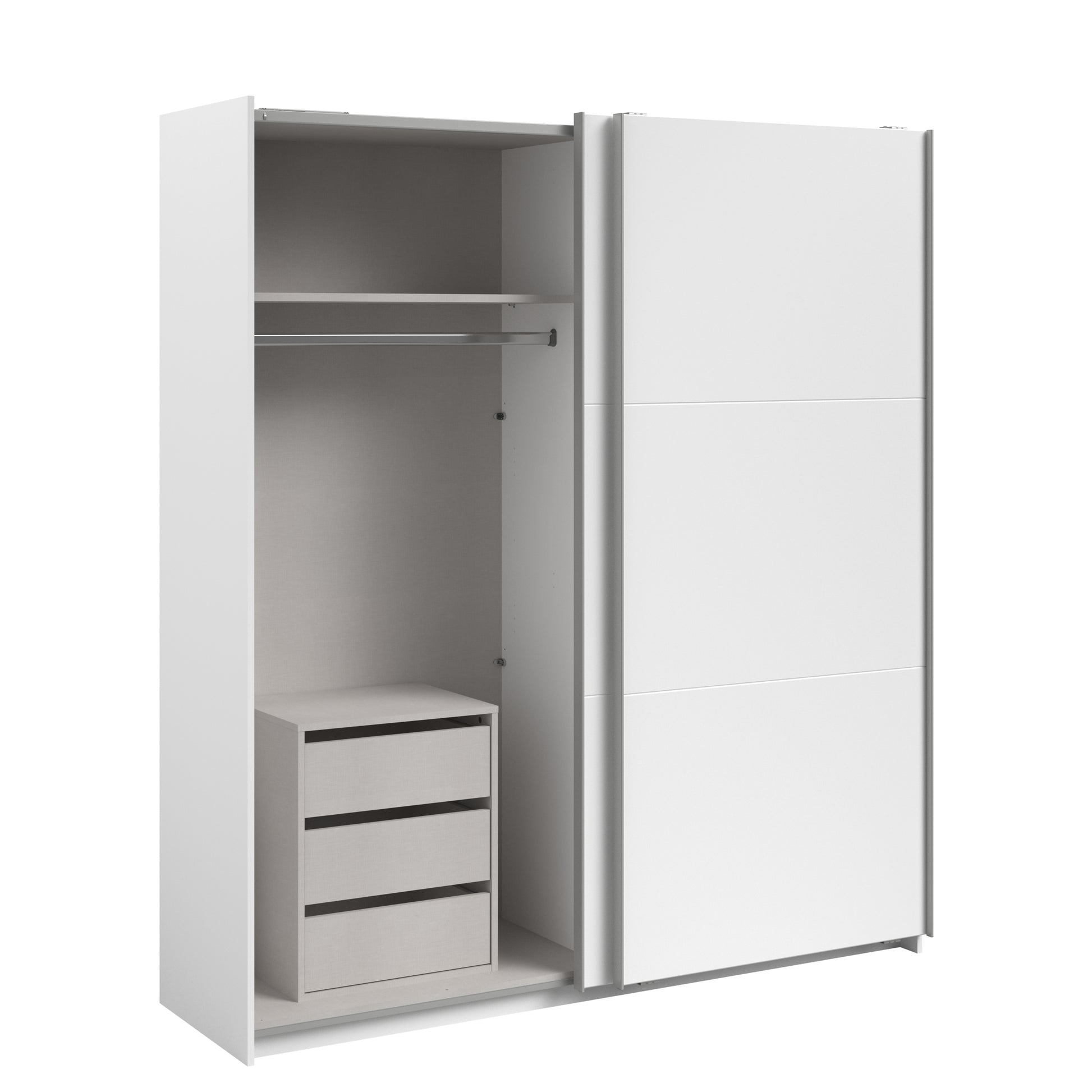 Parisot White finish wardrobe with sliding doors. A unique product small sliding wardrobe. No mirror just plain white. Easy roll soft close mechanism. Smooth action sliding doors. Can be assembled on delivery if required. IN STOCK FOR FAST FREE DELIVERY!