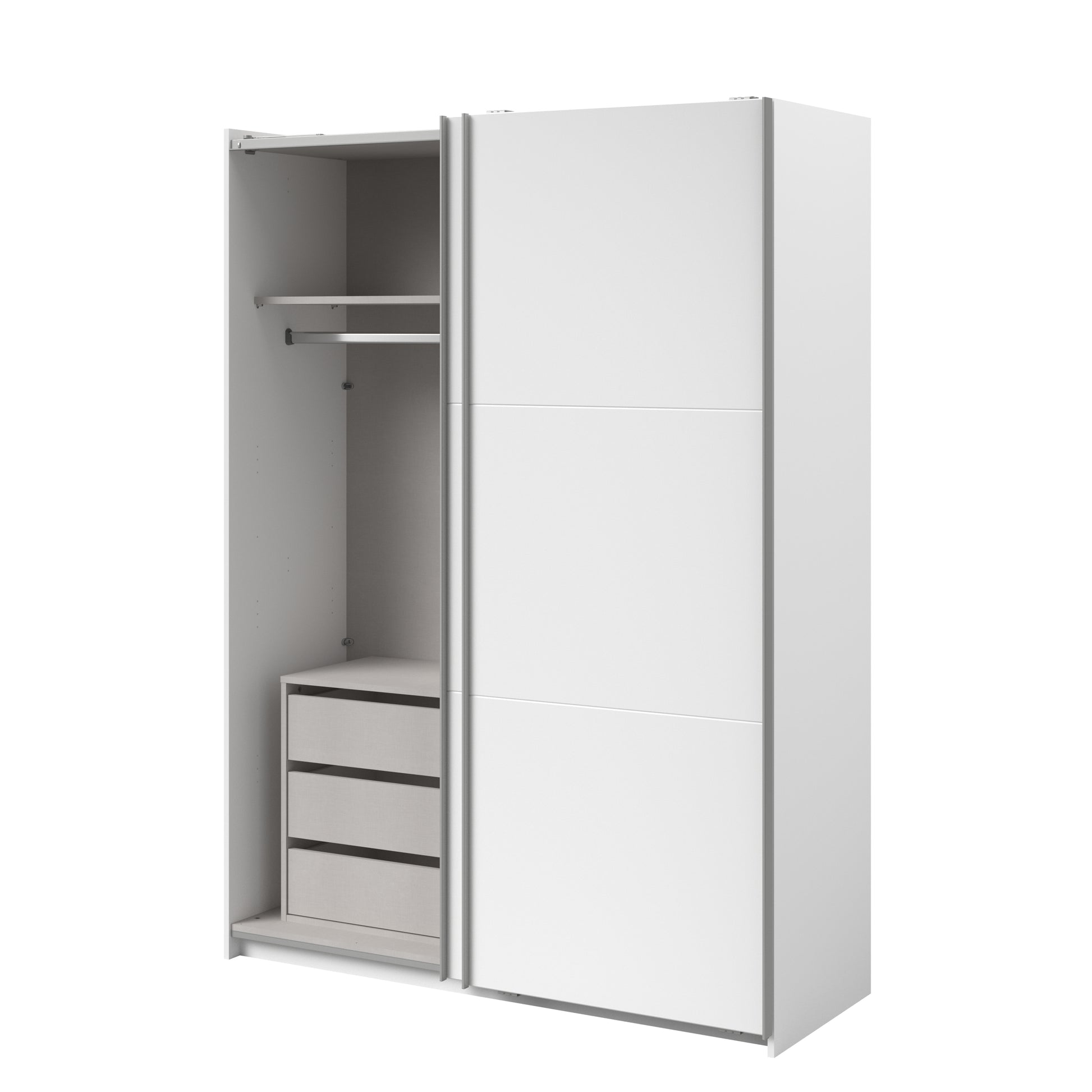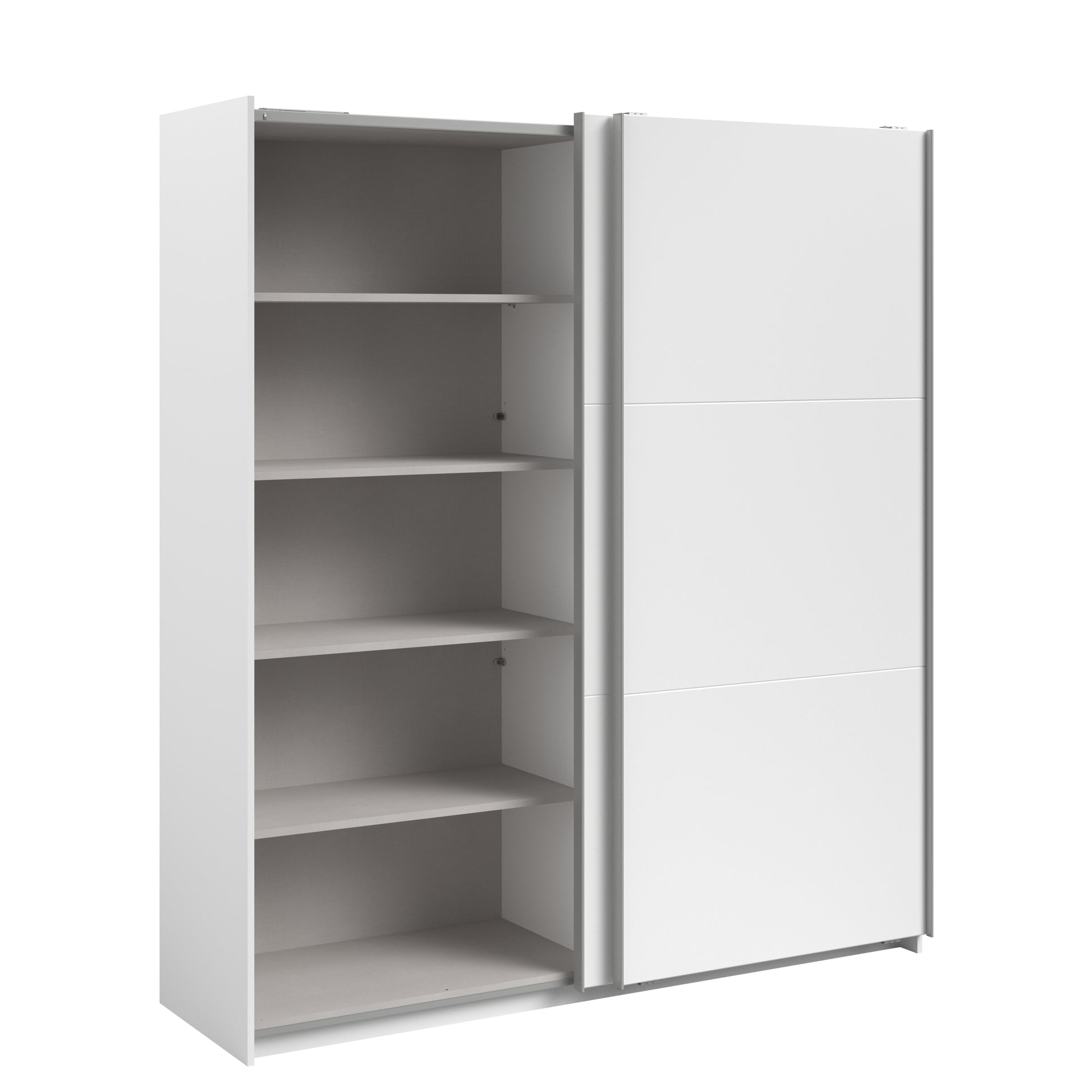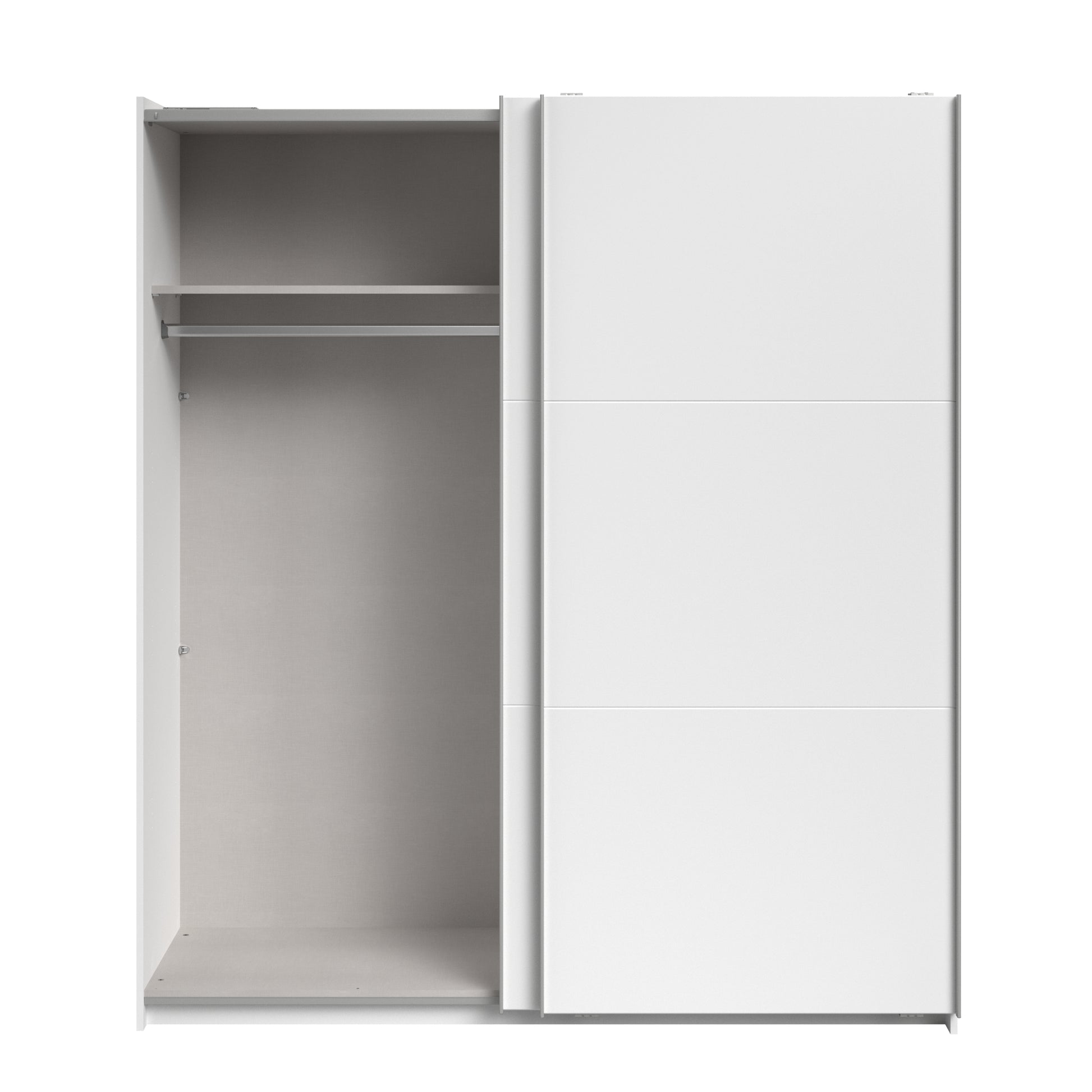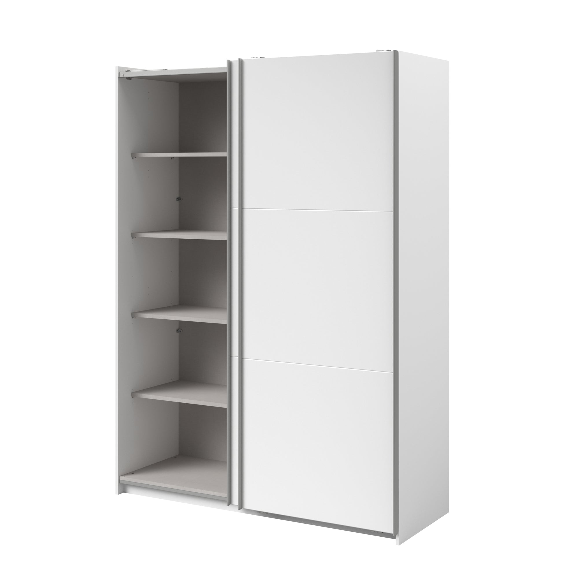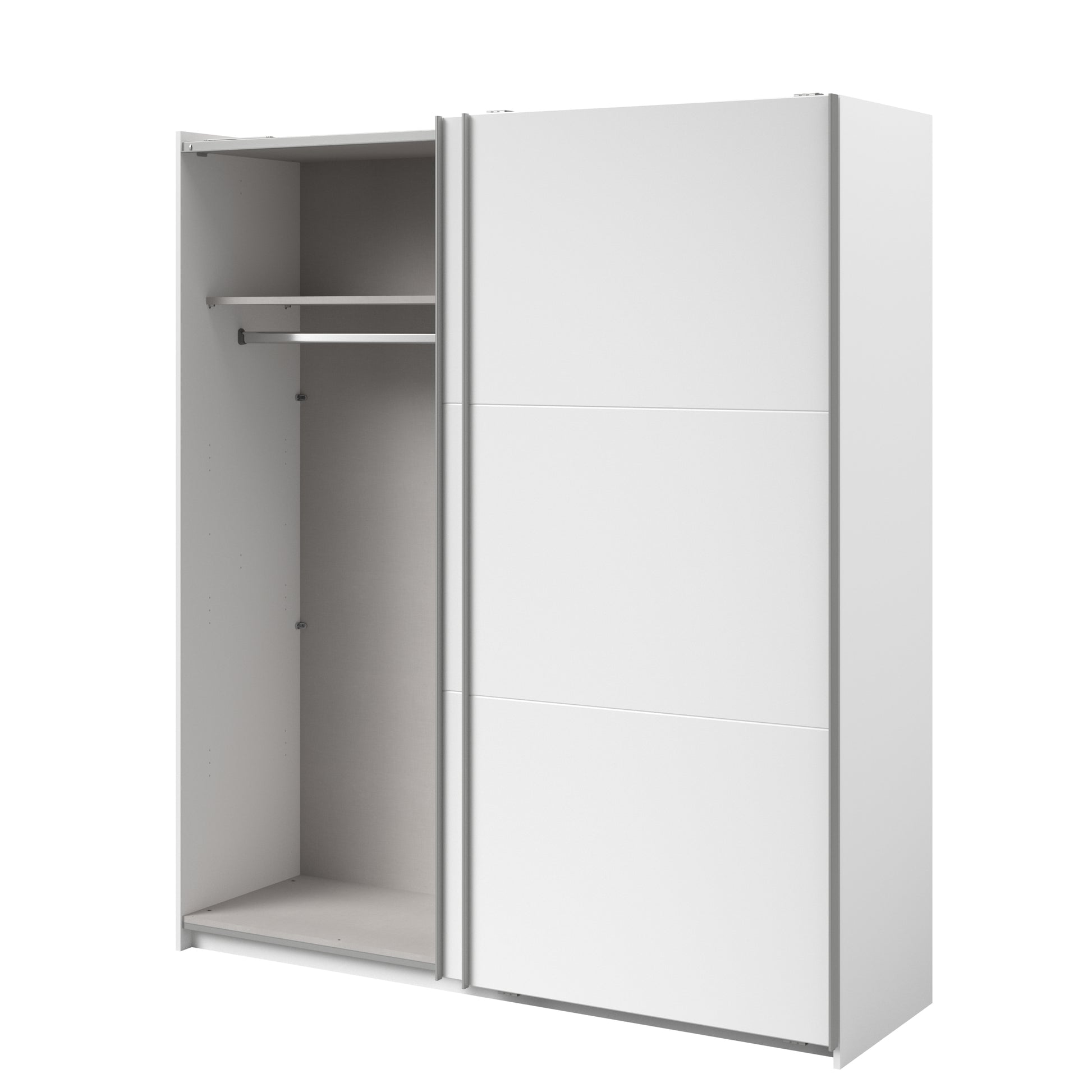 Parisot White finish wardrobe with sliding doors. A unique product small sliding wardrobe. No mirror just plain white. Easy roll soft close mechanism. Smooth action sliding doors. Can be assembled on delivery if required. IN STOCK FOR FAST FREE DELIVERY!