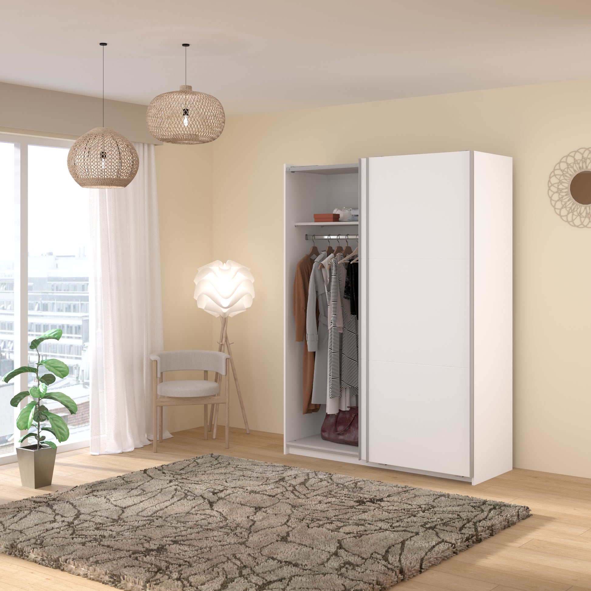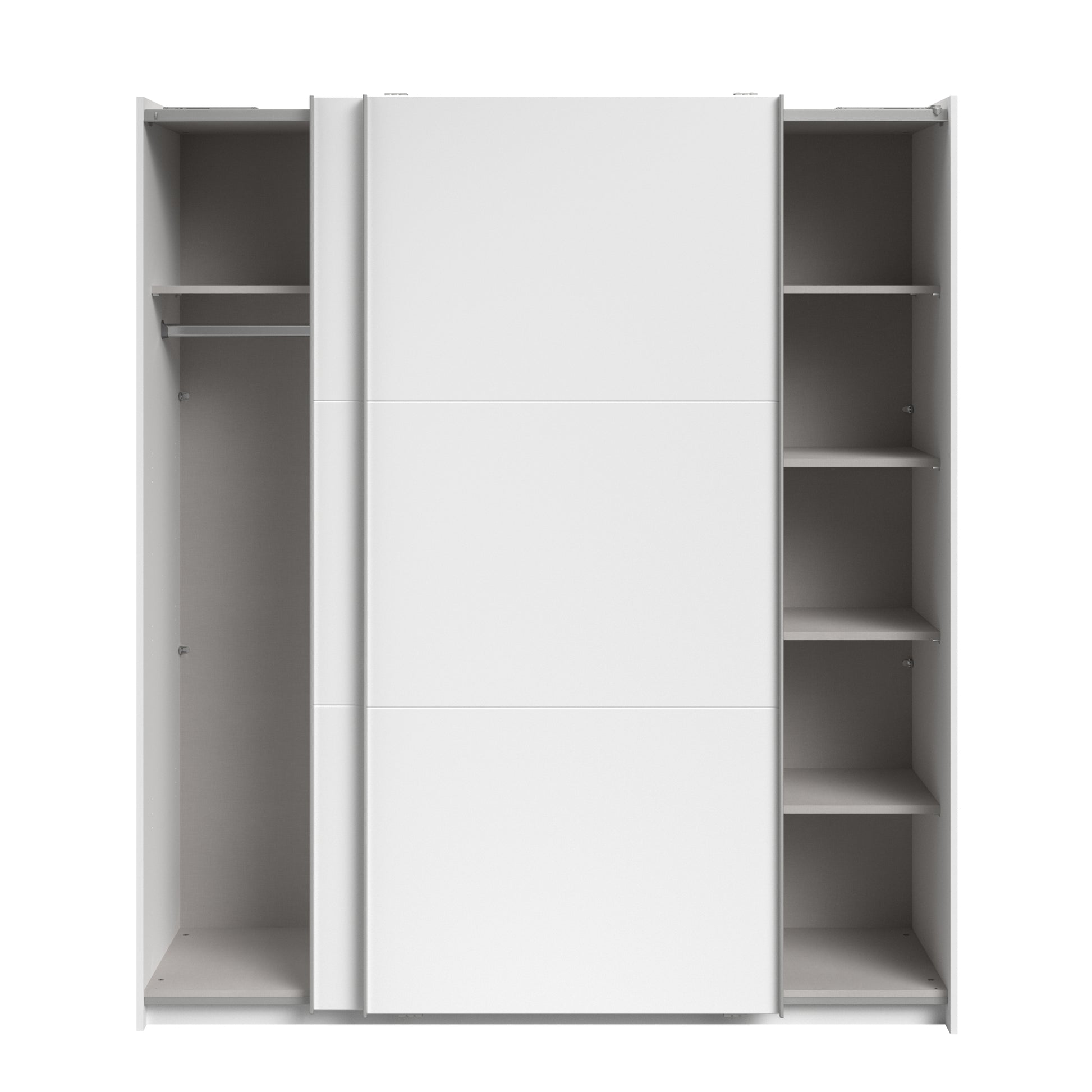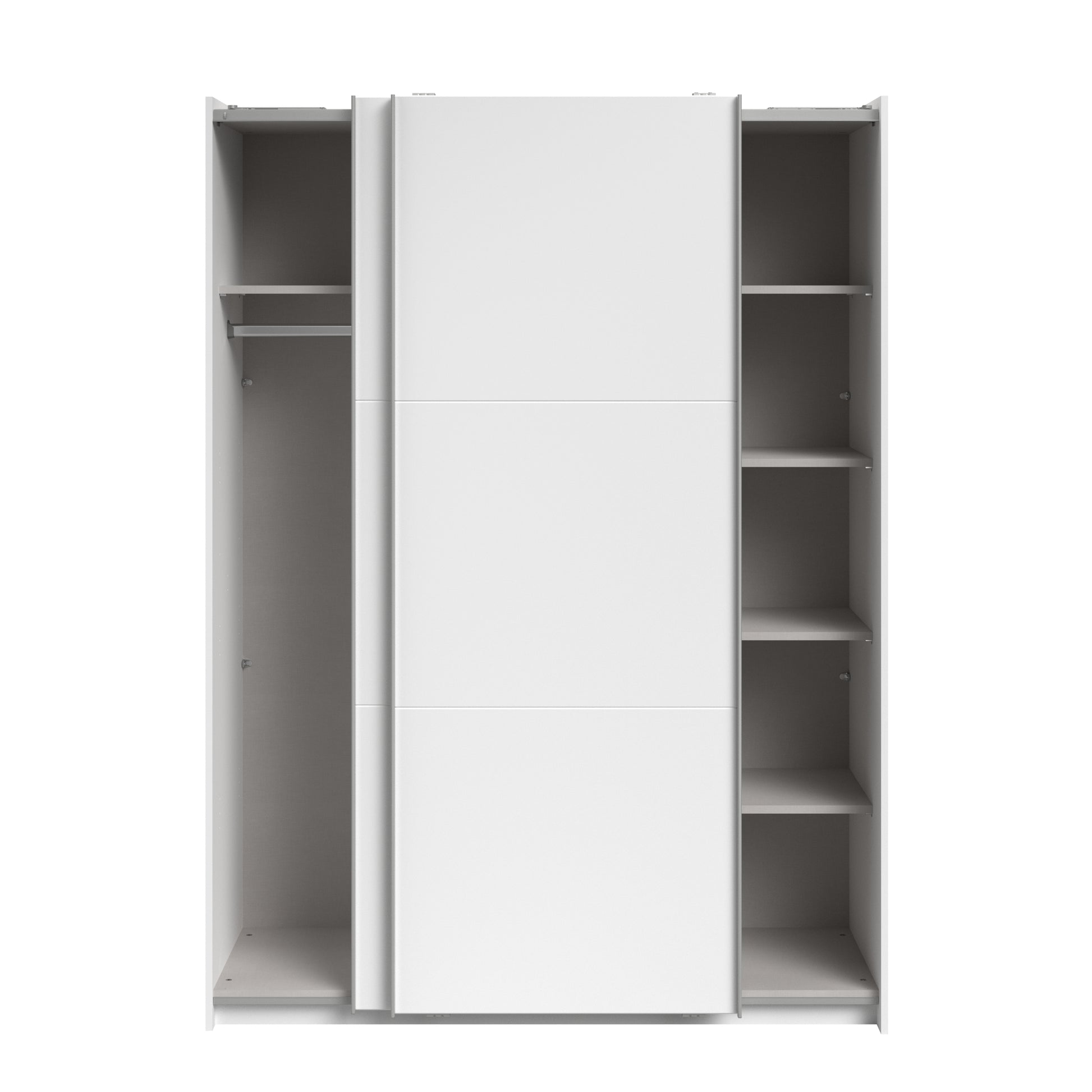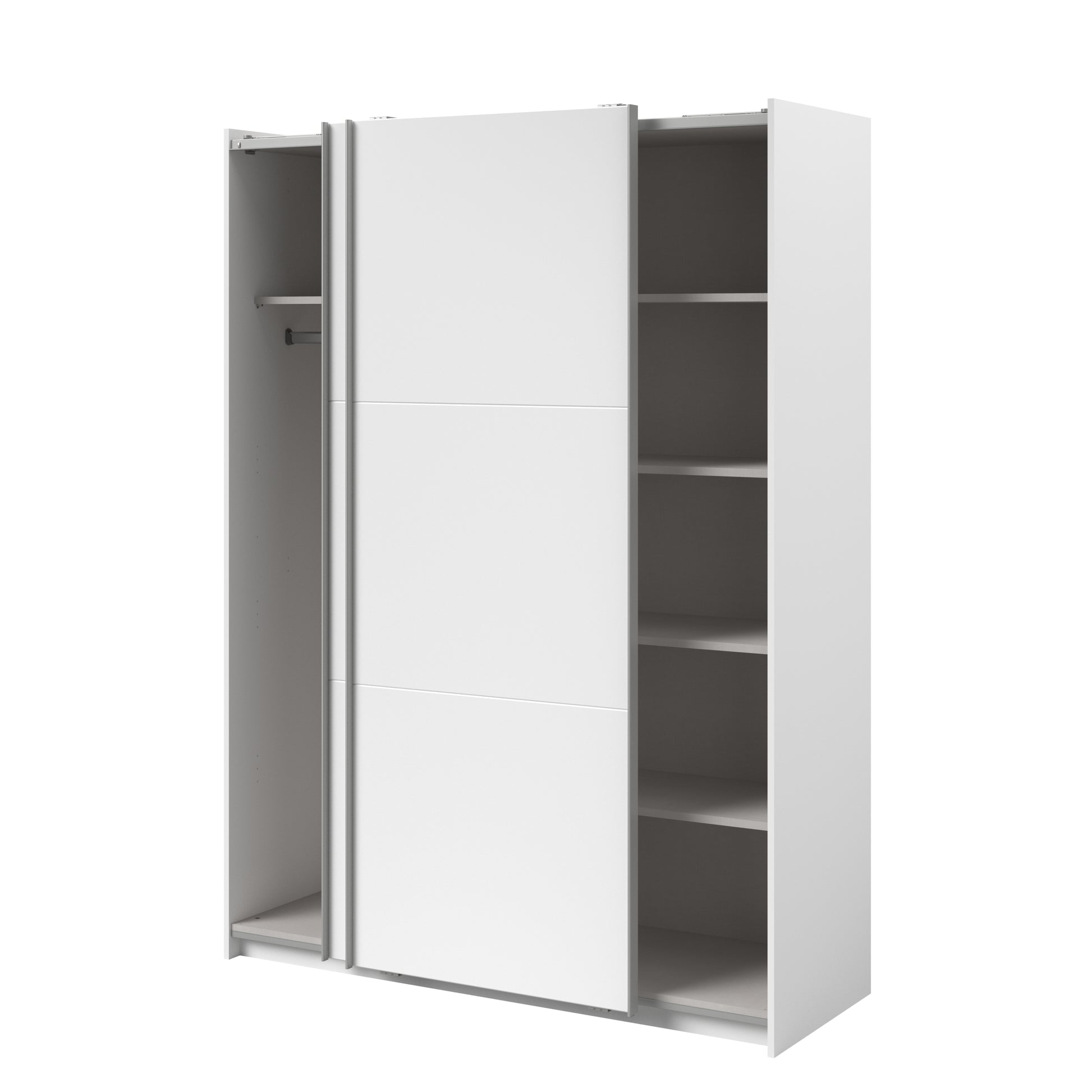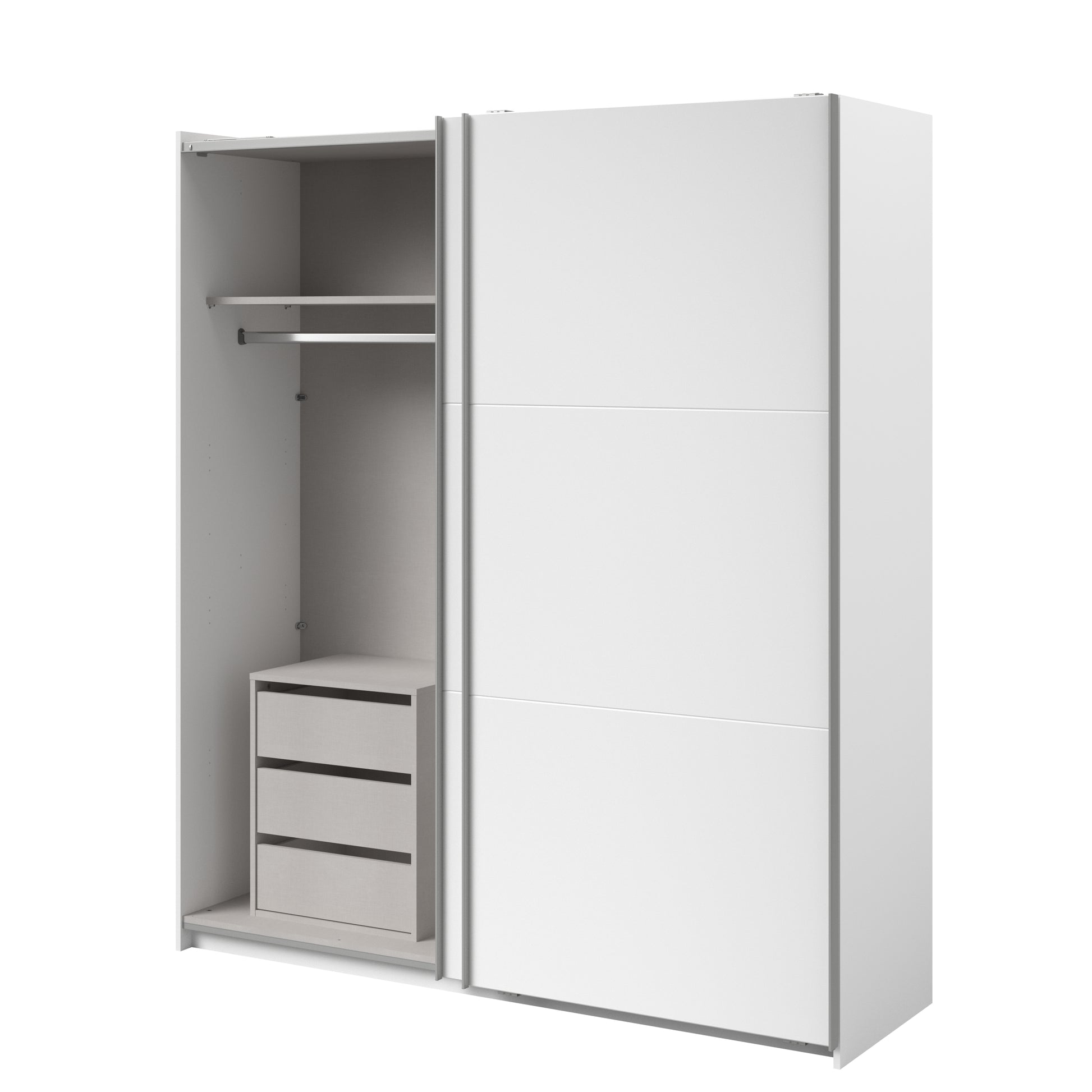 Parisot White finish wardrobe with sliding doors. A unique product small sliding wardrobe. No mirror just plain white. Easy roll soft close mechanism. Smooth action sliding doors. Can be assembled on delivery if required. IN STOCK FOR FAST FREE DELIVERY!